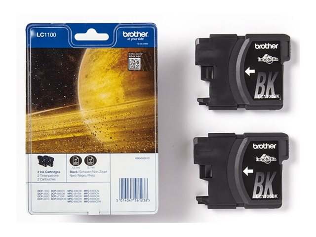 Brother LC1100BK - 2-pack - svart - original - blister med akustiskt / elektromagnetiskt alarm - bläckpatron - för Brother DCP-185, 395, 585, J715, MFC-490, 5490, 5890, 5895, 6890, 790, 795, 990, J615