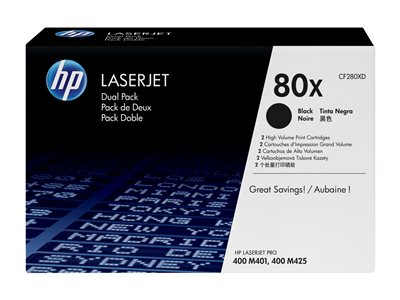 HP 80x - 2-pack - Lång livslängd - svart - original - LaserJet - tonerkassett (CF280XD) - för LaserJet Pro 400 M401, MFP M425