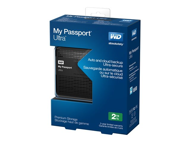 WD My Passport Ultra WDBMWV0020BBK - Hårddisk - krypterat - 2 TB - extern (portabel) - USB 3.0 - svart