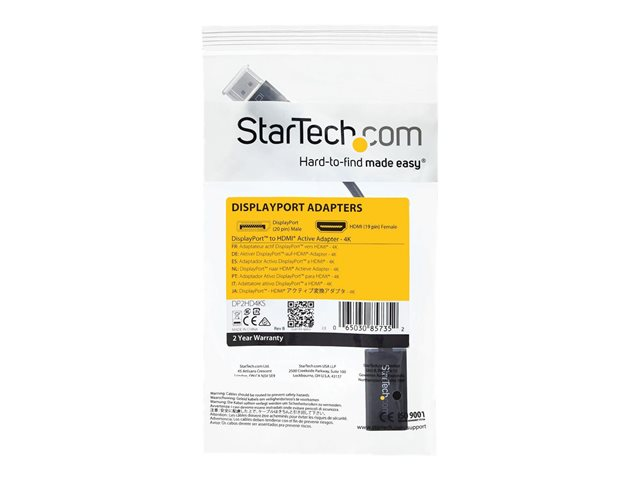 StarTech.com DisplayPort 1.2 to HDMI Adapter - 4K 30Hz - Active Audio Video Converter for DP laptop computers and HDMI Monitor Displays (DP2HD4KS) - Videokonverterare - DisplayPort - HDMI - för P/N: DKM30CHDPD, DKM30CHDPDUE, SV231QDPU34K, TB3CDK2DP, TB3CDK2DPUE, TB3DKM2DPL