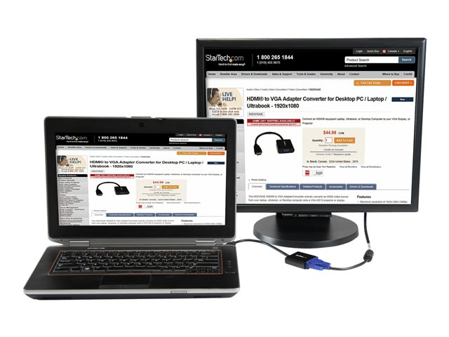 Startech - Videokort - HDMI hane till HD-15 (VGA) hona - 24.5 cm - svart - stöd för 1080p, aktiv - för P/N: DK30C2DPEPUE, DK30C2DPPDUE, DK31C3HDPD, DK31C3HDPDUE, SV211HDUC, SV221HUC4K