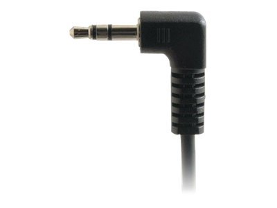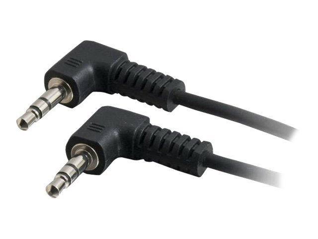 The C2G "Value Series" stereo right angle audio cable is specifically designed to provide a brilliant audio experience. It connects a PC sound card, portable CD player or any mini-stereo audio device to a multimedia speaker. This cable features two copper conductors and a drain wire. The conductors and drain wire are wrapped with an aluminum Mylar shield which prevents unwanted EMI/RFI interference. Fully molded nickel-plated connectors provide excellent strain relief for durable use.