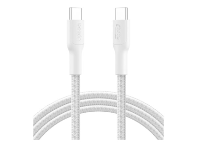 The Belkin BoostCharge USB-C cable offers a robust solution for charging and data transfer needs. With dual 24 pin USB-C connectors on both ends, this cable is designed for reliability and efficiency. Built with a durable braided exterior, it ensures longevity while enhancing the aesthetic appeal. Supporting USB Power Delivery at 240 W, it powers devices quickly, making it ideal for charging compatible gadgets while maintaining high-speed data transfers. Compliance with USB-IF and Global Recycle Standard (GRS) signifies a commitment to quality and sustainability.