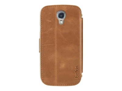 Belkin Wallet Folio with Stand - Fodral för mobiltelefon - läder - tan, naturligt korn - för Samsung Galaxy S4 F8M563BTC02