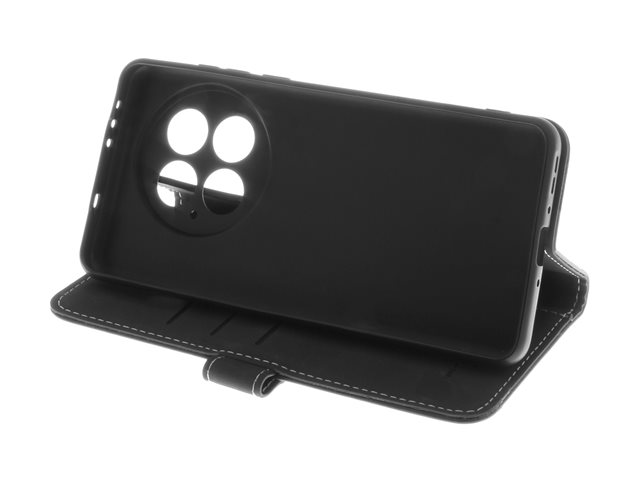Insmat - Vikbart fodral för mobiltelefon - genuint läder, kartong+papper+aluminiumfolie, termoplastisk polyuretan (TPU), bomullssömmar - svart - för OnePlus 13