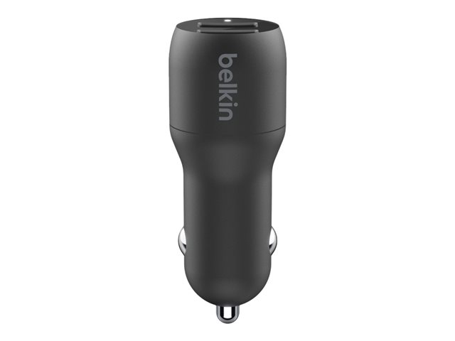 Belkin BoostCharge Dual Charger - Strömadapter för bil - 24 Watt - 4.8 A - 2 utdatakontakter (USB) - på kabel: USB-C - svart