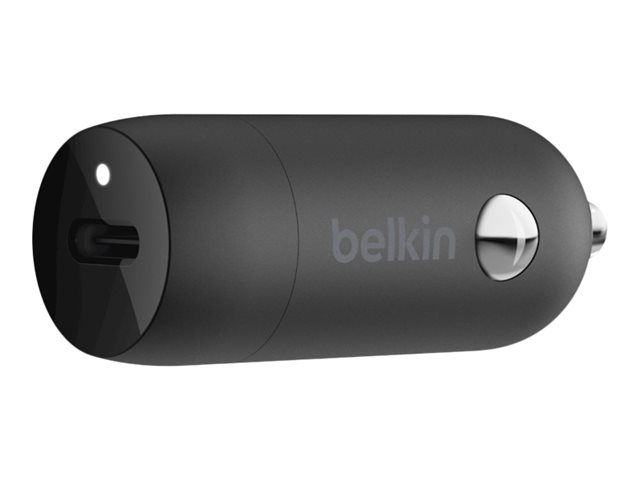 Belkin BoostCharge - Strömadapter för bil - 20 Watt - 3.6 A - PD (24 pin USB-C) - på kabel: Lightning - svart CCA003BT04BK