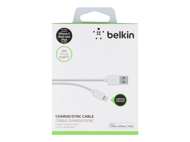 Belkin Charge/Sync Cable - Lightning-kabel - Lightning hane till USB hane - 2 m - vit F8J023BT2M-WHT