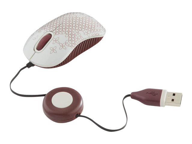 Targus Compact Laptop - Mus - höger- och vänsterhänta - optisk - 3 knappar - kabelansluten - USB - vit, röd