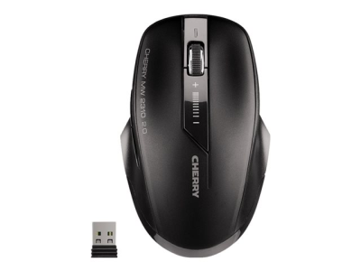 CHERRY MW 2310 2.0 är en mångsidig trådlös mus med 6 knappar, 2,4 GHz-teknik och ergonomisk design. Nano-USB-mottagaren är så liten att den säkert kan sitta kvar i den bärbara datorn även när du är på språng - musen är alltid redo att användas. CHERRY MW 2310 2.0 har en optisk sensor med 3 justerbara upplösningar (1000/1600/2400 DPI). Med DPI-omkopplaren på musens ovansida kan du välja upplösning med en knapptryckning. En lysdiod indikerar vald DPI. Det tekniska konceptet gör efterföljaren till den legendariska CHERRY MW 2310 särskilt energieffektiv. Med bara en uppsättning medföljande batterier (2 x AA) kan musen användas i upp till 3 år innan de behöver bytas ut. Musen har en on/off-brytare på undersidan så att den kan stängas av helt när den inte används. Avancerade material, en bekväm känsla och stor mångsidighet gör CHERRY MW 2310 2.0 till vad den är - CHERRY-musen för överlägsen prestanda till ett överraskande lågt pris.