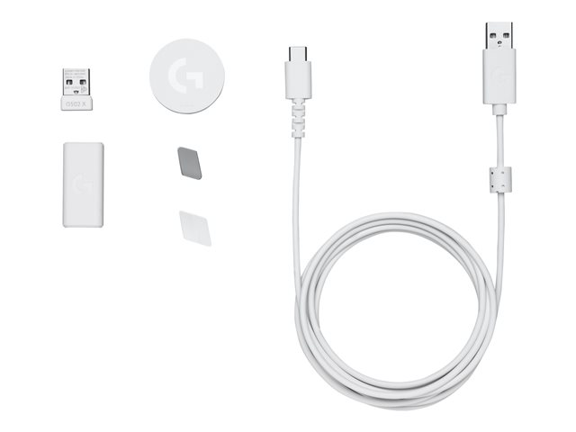 Logitech G G502 X PLUS - Mus - optisk - 11 knappar - trådlös - 2.4 GHz - USB Logitech LIGHTSPEED-mottagare - vit