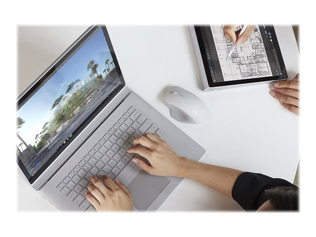 Microsoft Surface Precision Mouse - Mus - ergonomisk - högerhänt - optisk - 6 knappar - trådlös, kabelansluten - USB, Bluetooth 4.2 LE - grå - demo, kommersiell