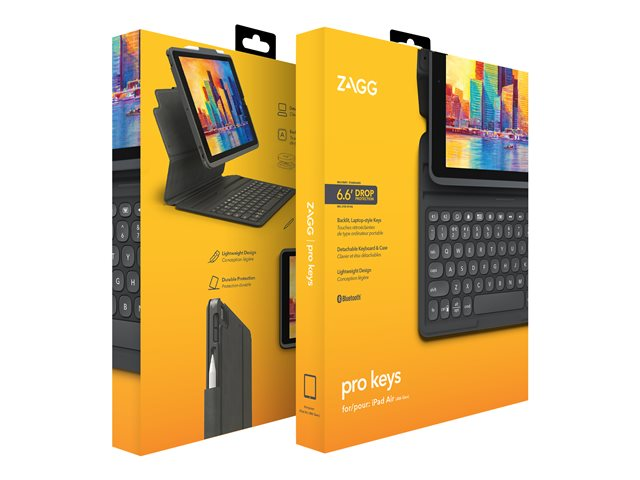 ZAGG Pro Keys - Tangentbord och foliefodral - bakgrundsbelyst - Bluetooth - Nordisk - svart/grå tangentbord, svart/grå fodral - för Apple 10.9-inch iPad Air (4:e generation, 5:e generation) 103407279