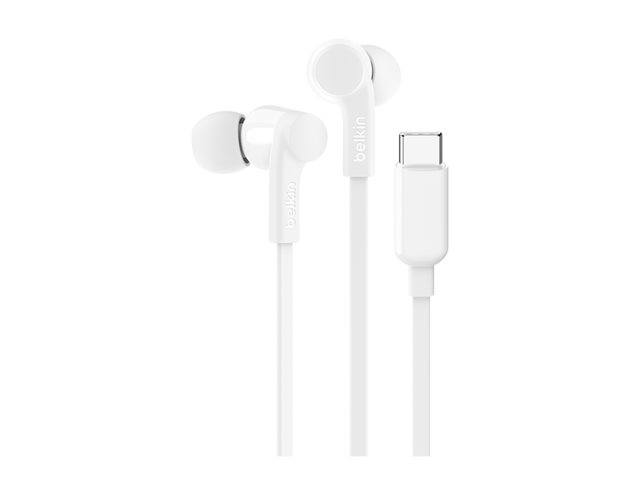 Belkin SoundForm - Hörlurar med mikrofon - inuti örat - kabelansluten - USB-C - ljudisolerande - vit