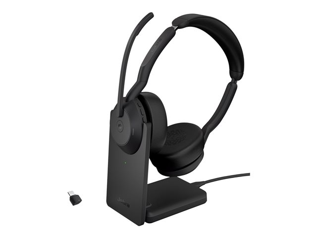 Jabra Evolve2 55 MS Stereo - Headset - på örat - Bluetooth - trådlös - aktiv brusradering - USB-C - svart - med laddningsställ - Optimerat för Microsoft Teams 25599-999-889