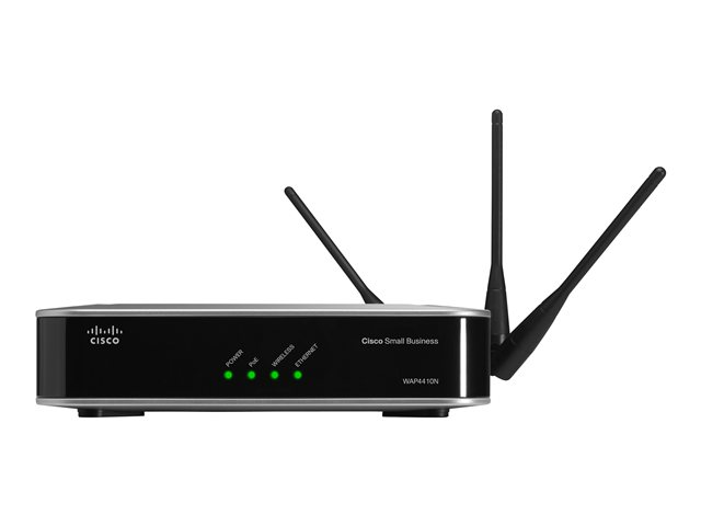 Moreover, the integrated quality of service (QoS) features provide consistent voice and video quality on both the wired and wireless networks, enabling the deployment of business-quality voice over IP (VoIP) and video applications. To protect your data and privacy, the Cisco Wireless-N Access Point supports the industrial strength wireless security of Wi-Fi Protected Access (WPA), encoding all your wireless transmissions with powerful encryption. The MAC address filter lets you decide exactly who has access to your wireless network, and advanced logging keeps you apprised of access attempts. The rogue access point detection capability notifies the administrator when an unauthorized access point is detected in the airspace. The WPS (Wi-Fi Protected Setup) feature facilitates simple and secure deployment of security in the wireless network. Configuration is a snap with the web browser-based configuration utility. The Cisco WAP4410N Wireless-N Access Point is the best way to add wireless access to your existing business network.