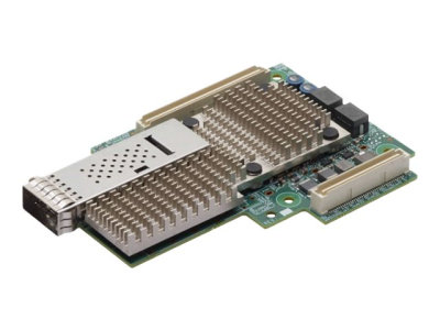 The Broadcom BCM957504-M1100G16 is a single-port 100 Gb/s PCI Express v4.0 x16 network adapter card designed to the Open Compute Project (OCP) mezzanine card specification with a QSFP56 network connector. The adapter is designed to the OCP Mezzanine v2.0 specification as a Type 2 adapter with the board outline adhering to the original v0.5 dimensions. The adapter supports QSFP56/QSFP28/QSFP+ optical modules and copper direct-attach cables. The card uses the Broadcom BCM57504 100GbE MAC controller with an integrated 100GbE SFI transceiver.
