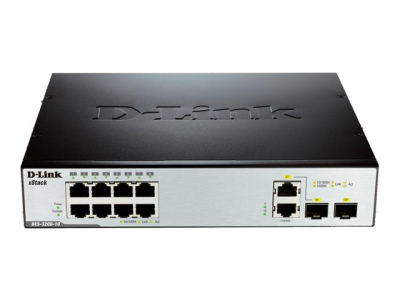 D-Link xStack DES-3200-10 - Switch - Administrerad - 8 x 10/100 + 2 x kombinations-Gigabit SFP - skrivbordsmodell