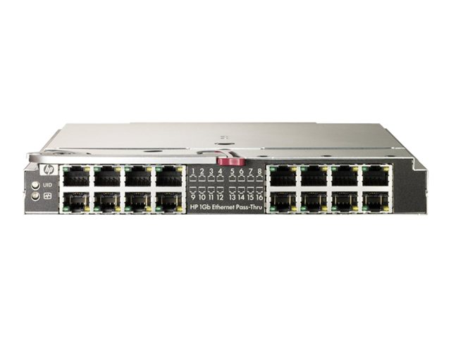 HPE Ethernet-vidarekopplingsmodulen på 1 Gb för c-Class BladeSystem är avsedd för kunder som önskar en oadministrerad direktanslutning mellan varje serverblad inom chassit och en extern nätverksenhet, som till exempel en switch, router eller hubb. HPE Ethernet-vidarekopplingsmodulen på 1 Gb är idealisk för datacenter med en befintlig nätverksinfrastruktur och tillhandahåller sexton interna nedlänkar på 1 Gb och sexton externa RJ-45- kopparupplänkar på 1 Gb, vilket ger en icke-switchad och icke-blockerande 1:1-sökväg mellan servern och nätverket. Ethernet-vidarekopplingsmodulen, som är utformad för att passa i ett I/O-fack i c-Class-chassit, bör installeras parvis för att tillhandahålla redundanta uplink-sökvägar till nätverket.