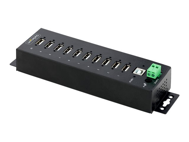 StarTech.com 10-Port Industrial USB 2.0 Hub, Rugged USB Hub w/15kV Air/8kV Contact ESD Level 4 Protection, DIN/Wall/Desk Mountable USB-A Hub, Multiport USB Hub with Locking Ports - Metal Construction (USB210AIND-USB-A-HUB) - Hubb - industriell - 10 x USB 2.0 - skrivbordsmodell, DIN-skenmonterbar, väggmonterbar - TAA-kompatibel