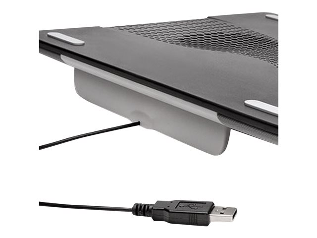 - USB cable plugs into the laptop to power the fans