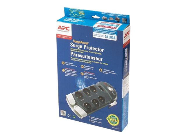 APC SurgeArrest Home/Office - Överspänningsskydd - AC 230 V - utgångskontakter: 6 - Belgien, Frankrike - träkol PH6T3-FR